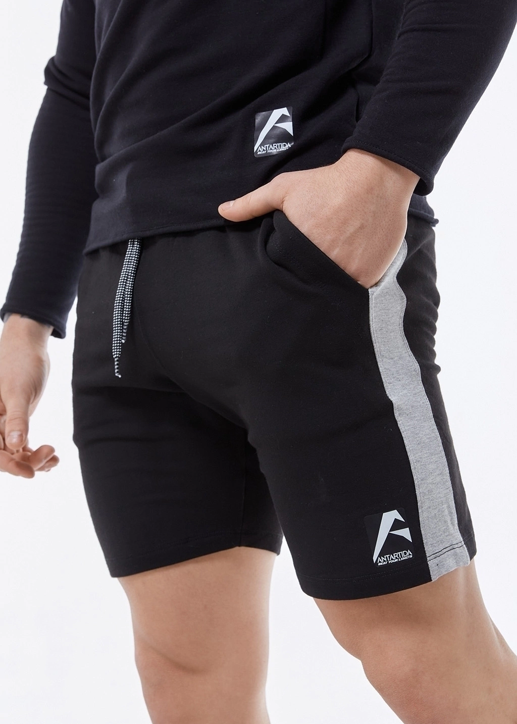 Bermuda lisa rústico con lycra, con vivo lateral estampado y logo