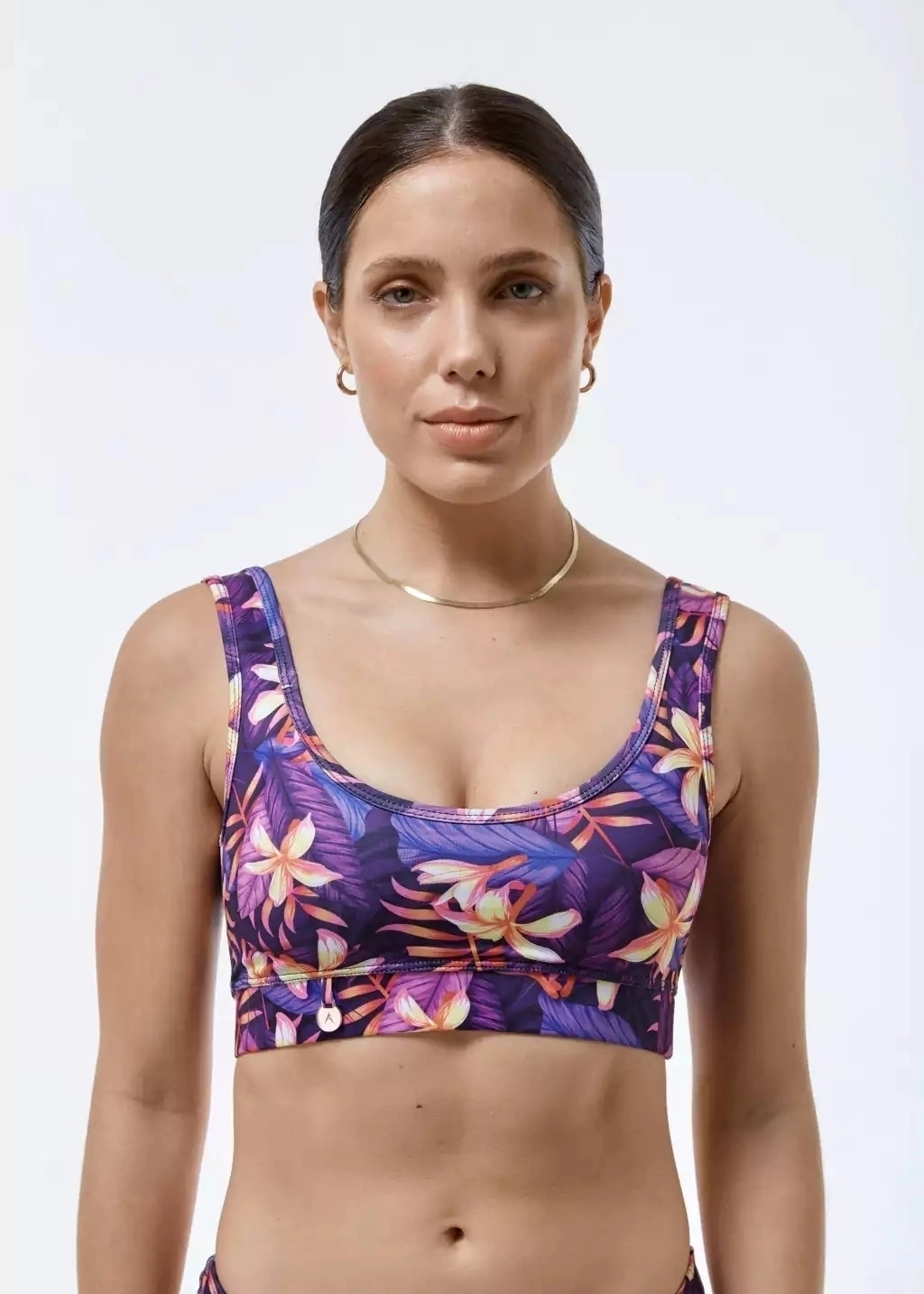 Top bikini sublimada en tela tricot. Su tejido ligero y flexible hace que este producto tenga doble rebote y ajuste perfecto.